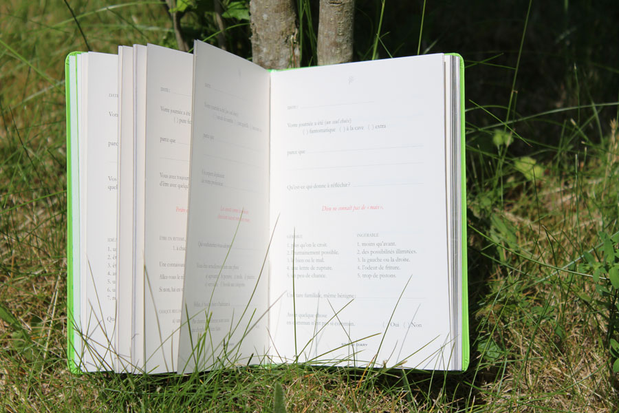 Les pages sont pré-remplies de questions auxquelles on répond pour détailler sa journée, on inscrit la date en haut de la page pour s’y retrouver et du coup, s’il envie nous dit, on peut remplis plusieurs pages pour un même jour et/ou les remplir de manière aléatoire…
